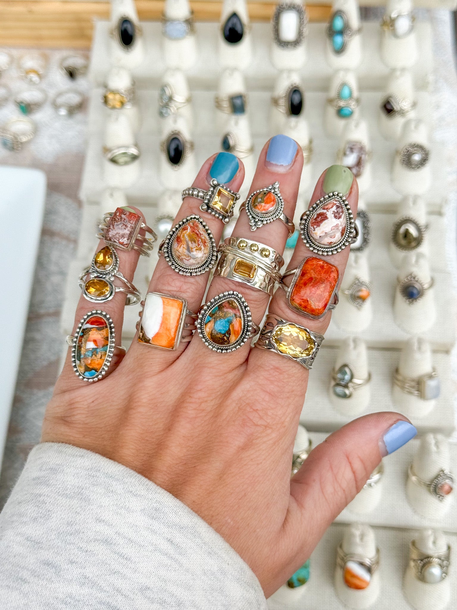 Many of you know me from the last ten years of art shows around Michigan and Florida. Silver Linings 925 is all about wearing rings you love! Unique, handmade, and authentic gemstones in a wide range of sizes and designs.