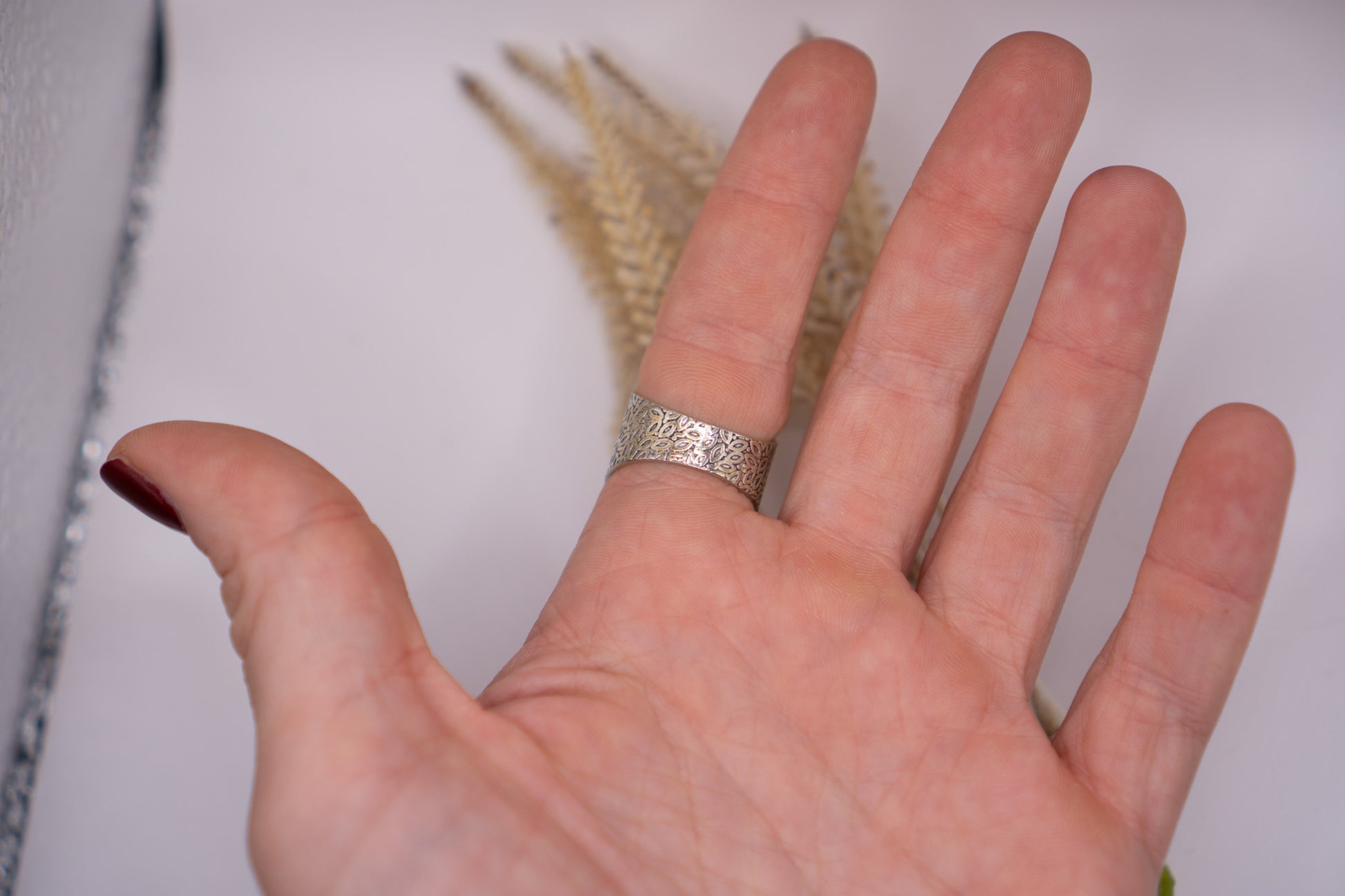 ✨ Craftsmanship: Solid sterling silver .925 with a wide, stamped band that adds rustic character.