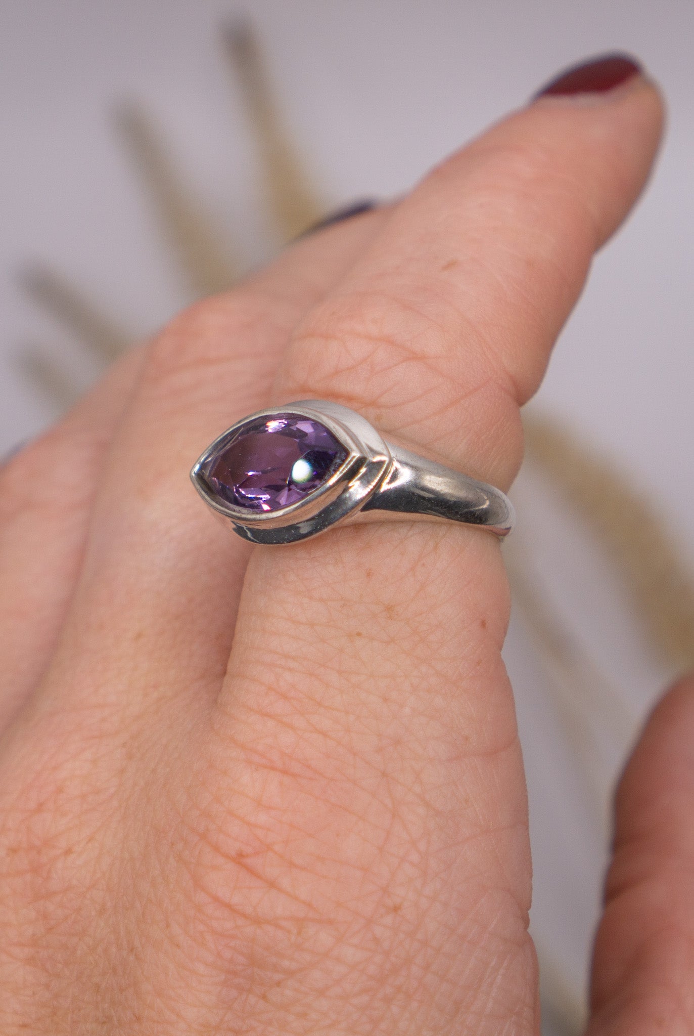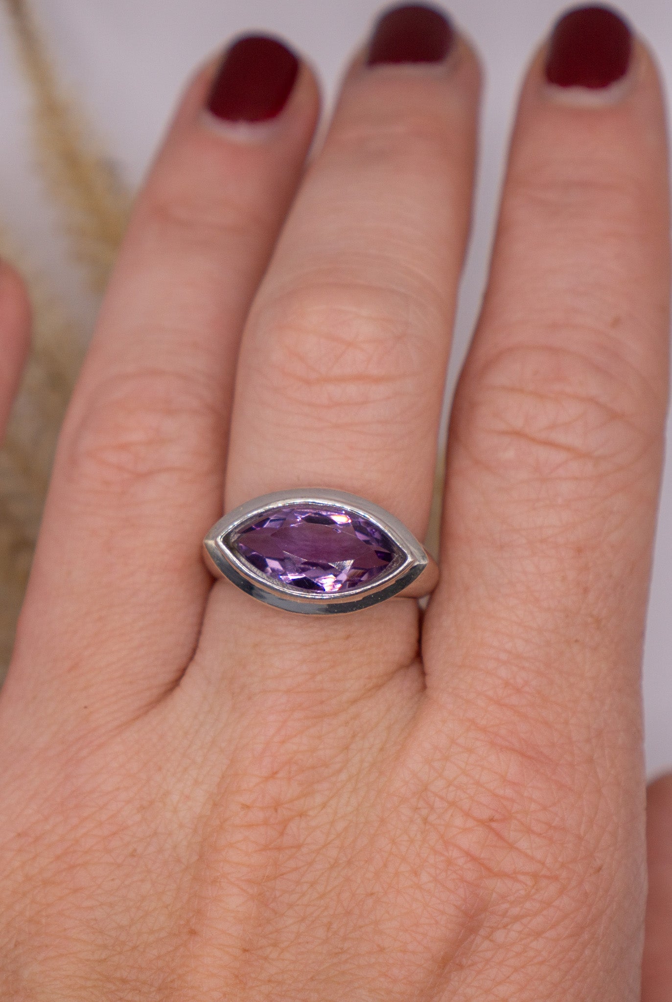 East-West Amethyst Ring – Solid Sterling Silver .925