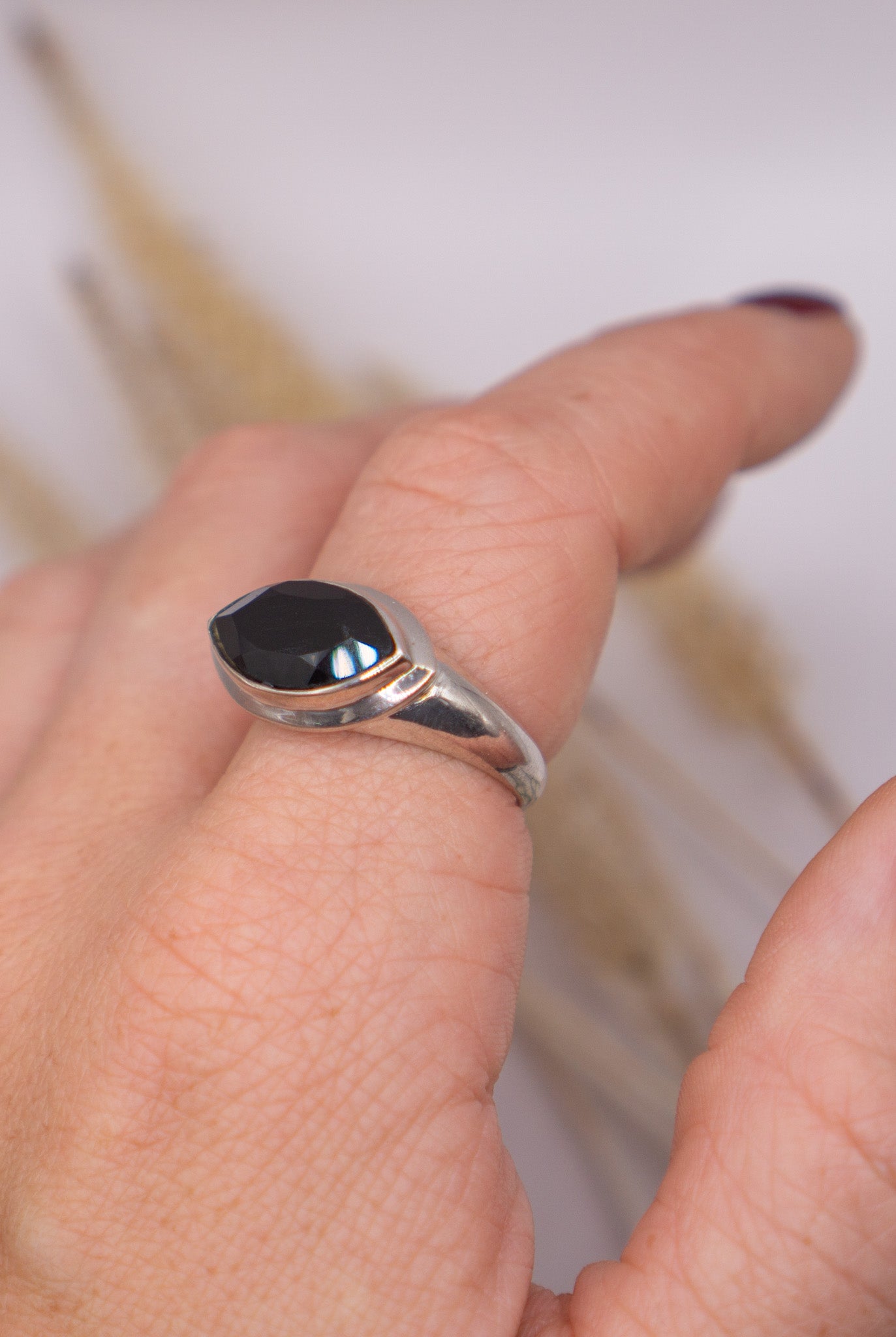 East-West Black Onyx Ring – Solid Sterling Silver .925
