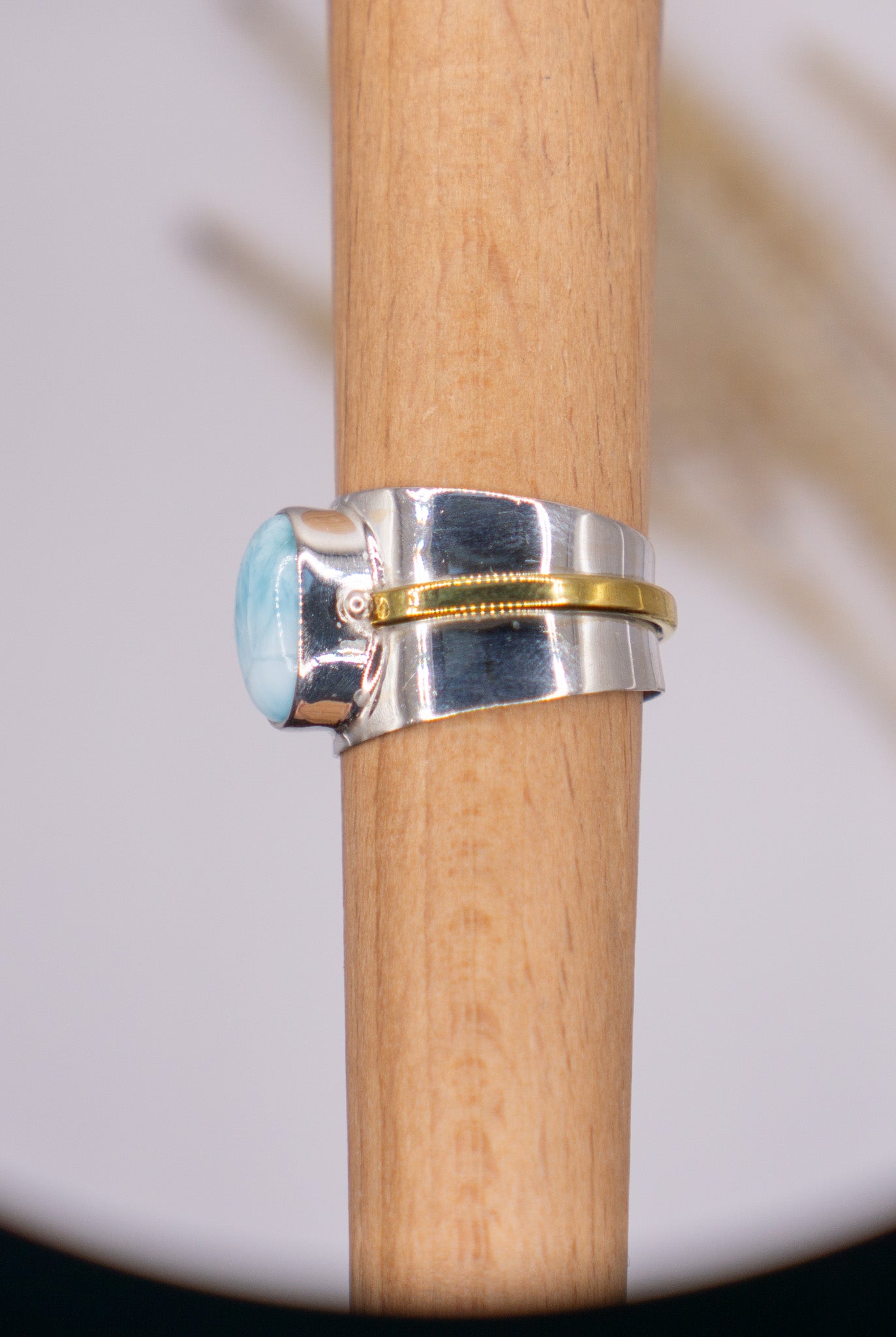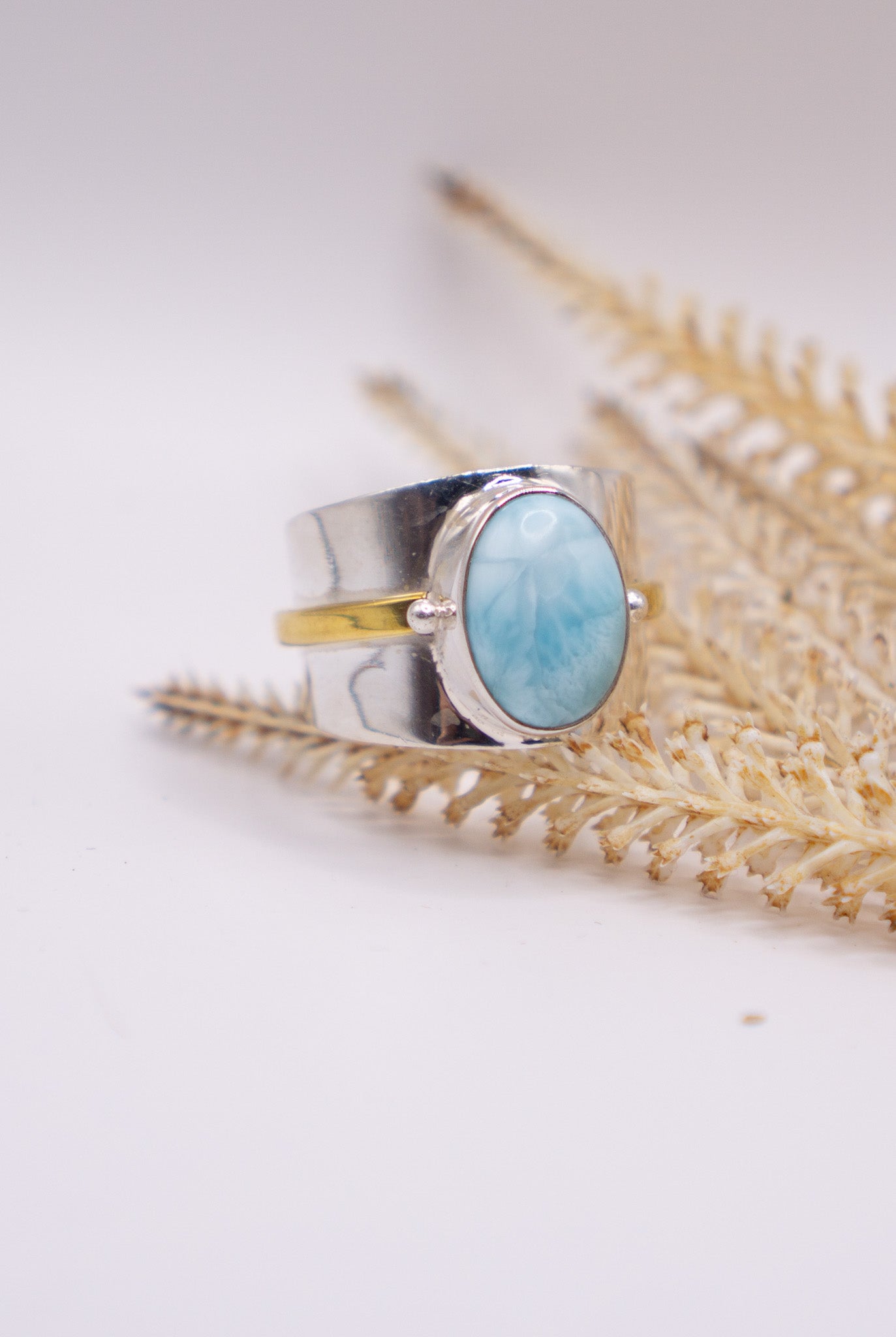 Larimar “Queen” Ring – Solid Sterling Silver .925 with Brass Band