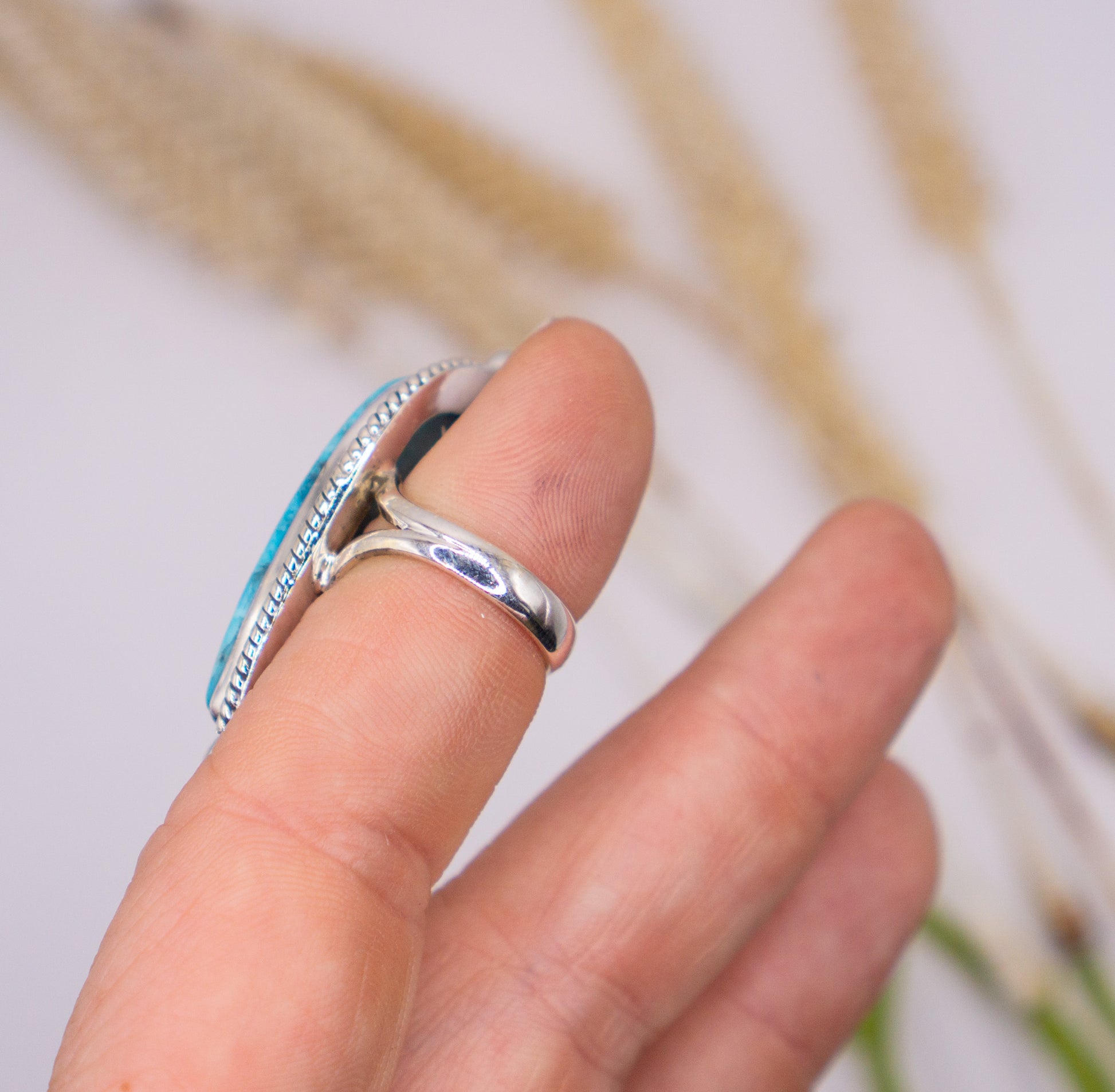 Elongated Turquoise Ring in Navajo-Inspired Setting – Solid Sterling Silver .925