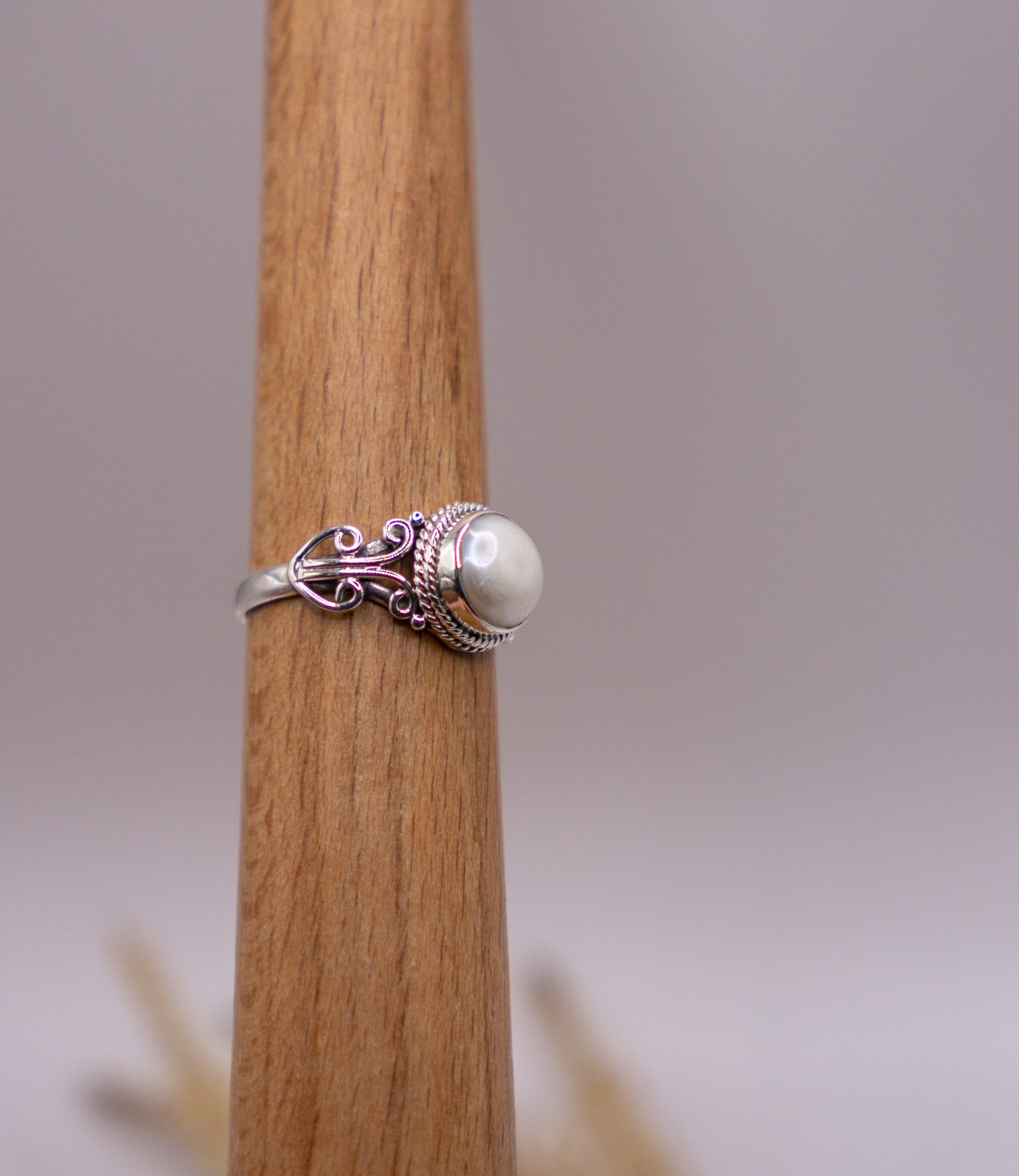Classic elegance meets vintage charm in this freshwater pearl ring. Handcrafted in solid sterling silver (.925), it features a luminous round freshwater pearl set in an intricate Victorian-inspired setting. Dainty yet eye-catching, this piece brings timeless sophistication to your everyday style.