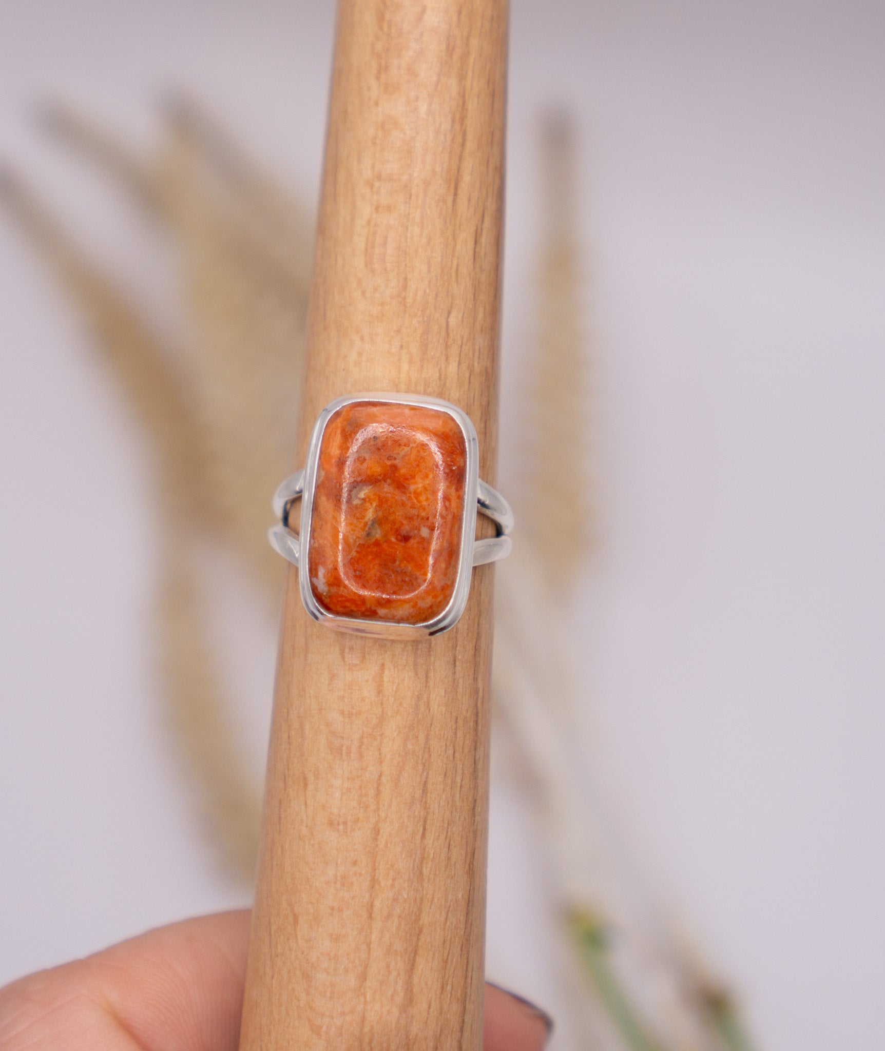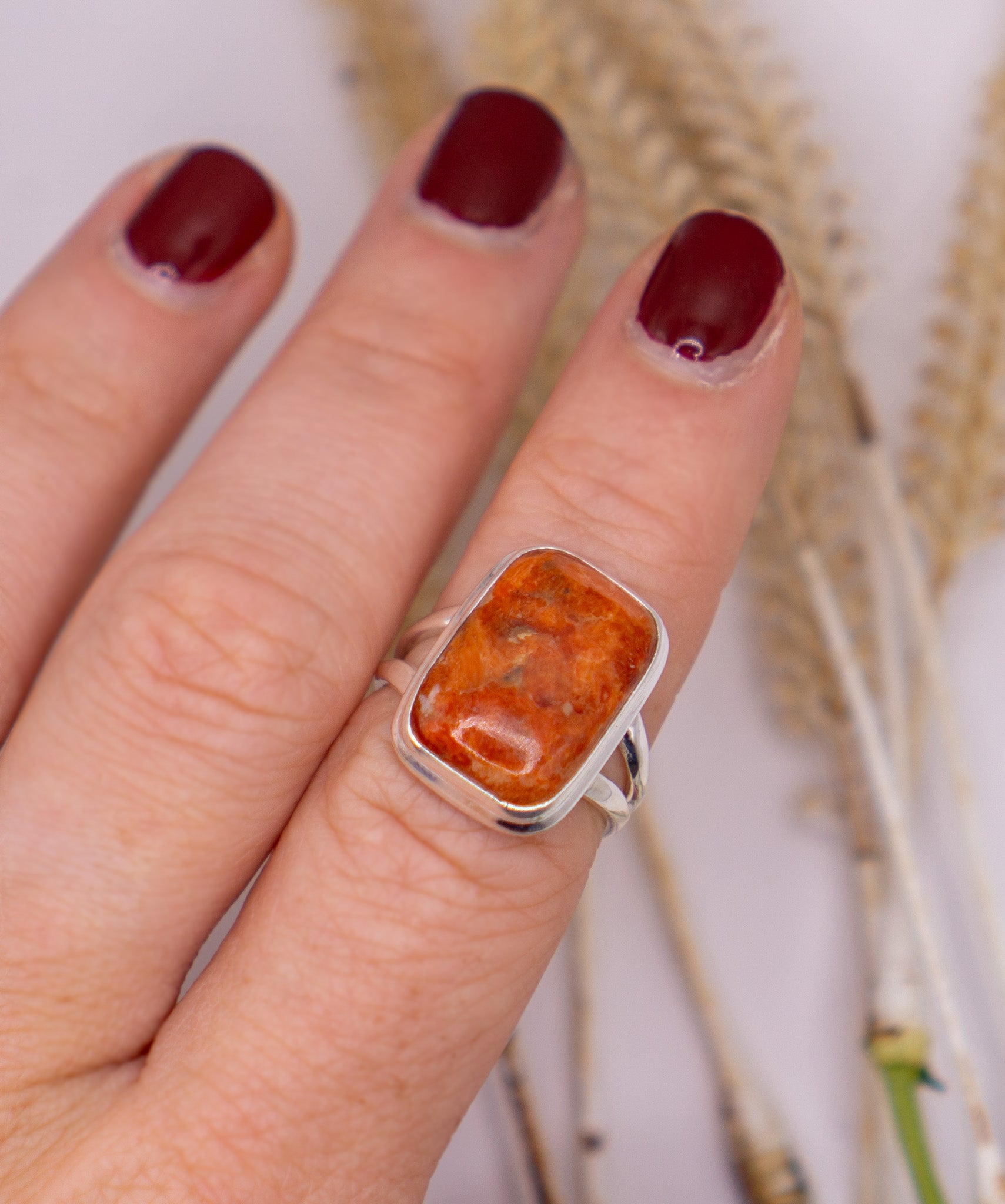 Authentic Red Turquoise: Each stone is hand-selected for its unique patterns and deep red/ orange hue, making every ring truly one-of-a-kind. NOTE: the ring in the photo is the ring you will receive. Stone size: 14mmx18mm