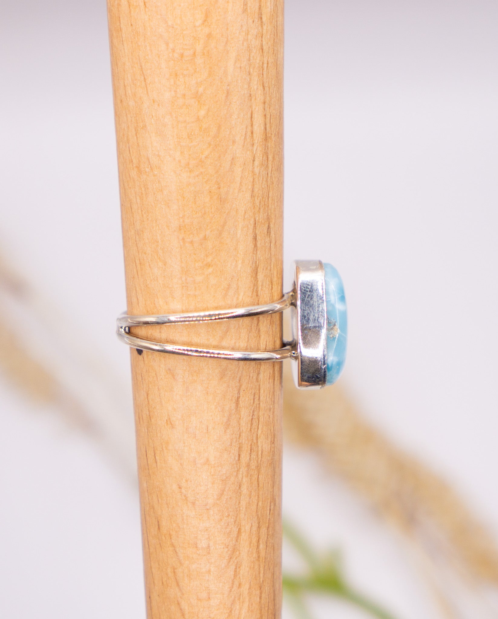 Square Larimar Ring with Double Silver Band – Solid Sterling Silver .925 | Handmade