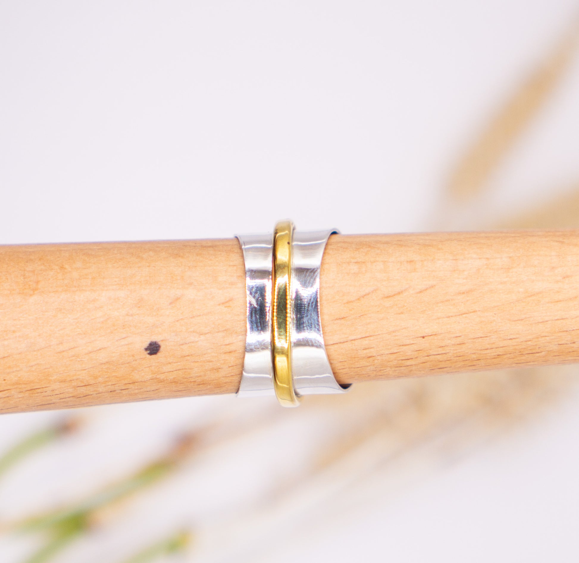 Solid Sterling Silver (.925) base with a brass accent wrap, blending warm and cool tones in perfect harmony.