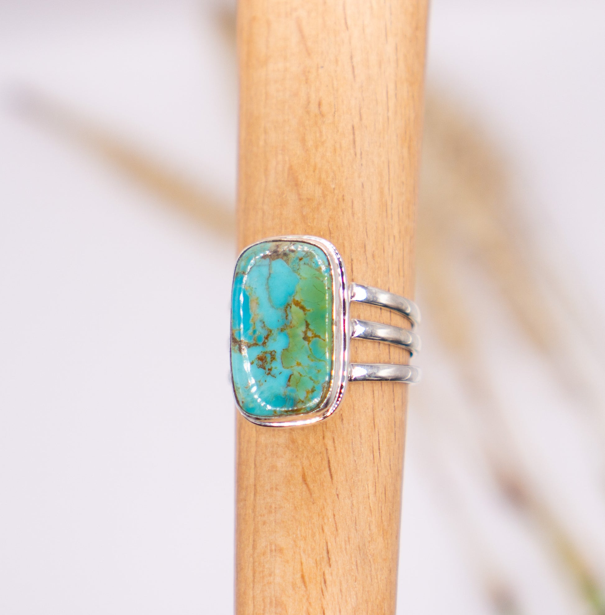 Rectangular Turquoise Ring with Triple Shank and Smooth Bezel – Solid Sterling Silver .925